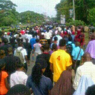 Several mobile telephones were forcefully taken from passers-by and destroyed by the students who alleged that the owners were recording the protest.